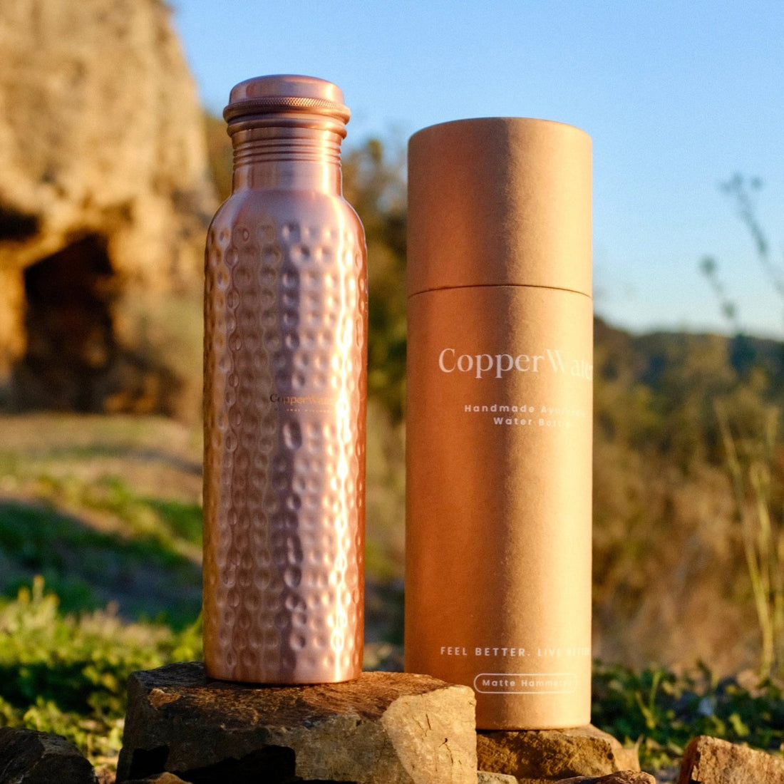 Handmade Brushed & Hammered Copper Ayurvedic Water Bottle