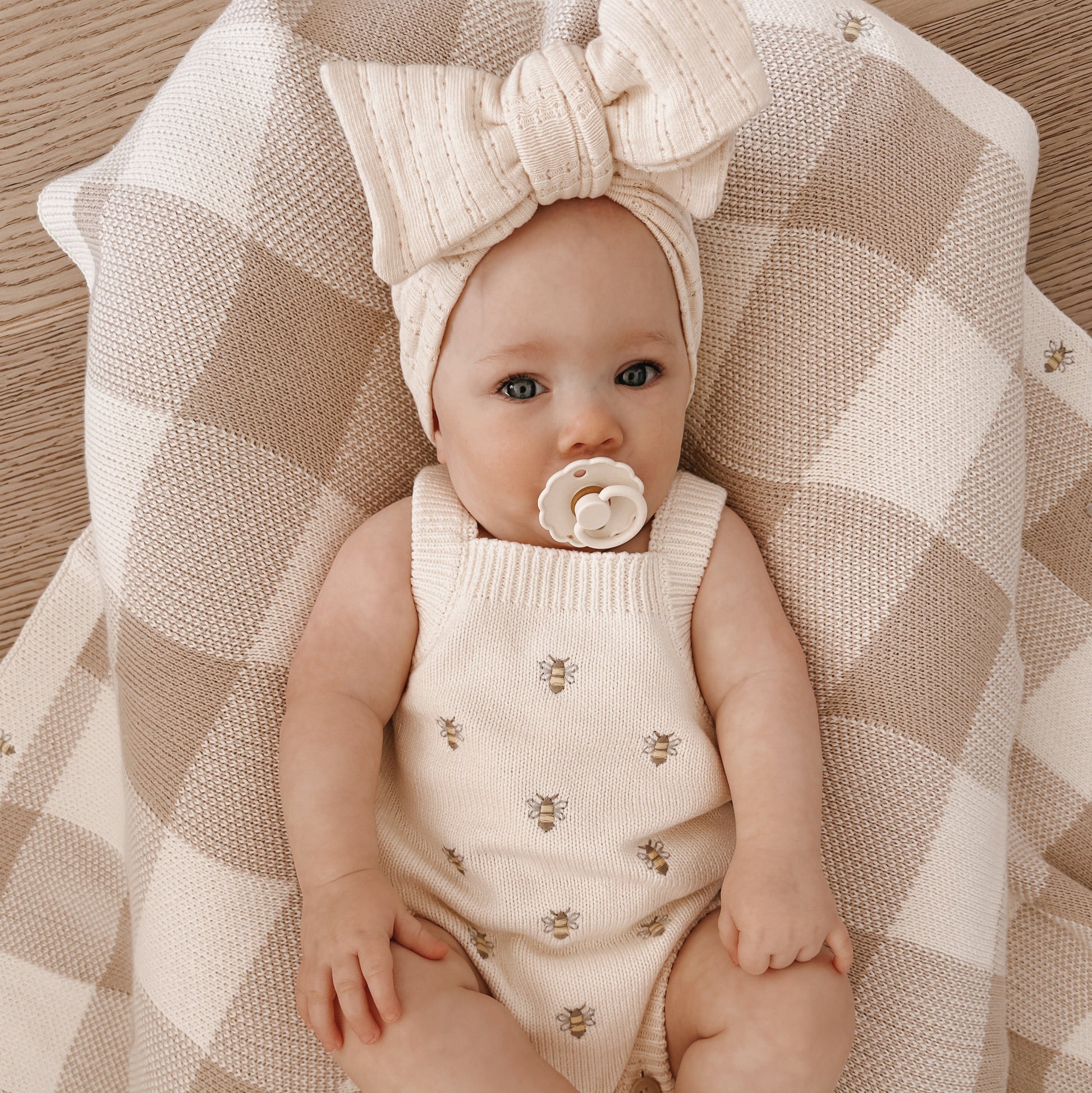 With gardens of flowers blooming in summertime the bees are busy celebrating! This summertime romper is perfect for your little busy bee with it's relaxed fit and airy, breathable knit. Made from 100% organic cotton, this romper is made with bees in mind, avoiding all the harmful pesticides and chemicals. Delicately embroidered, this romper has all the adorable details perfect for your little bug. Finish the look with our matching Busy Bee Blanket for a complete look that is as sweet as honey!