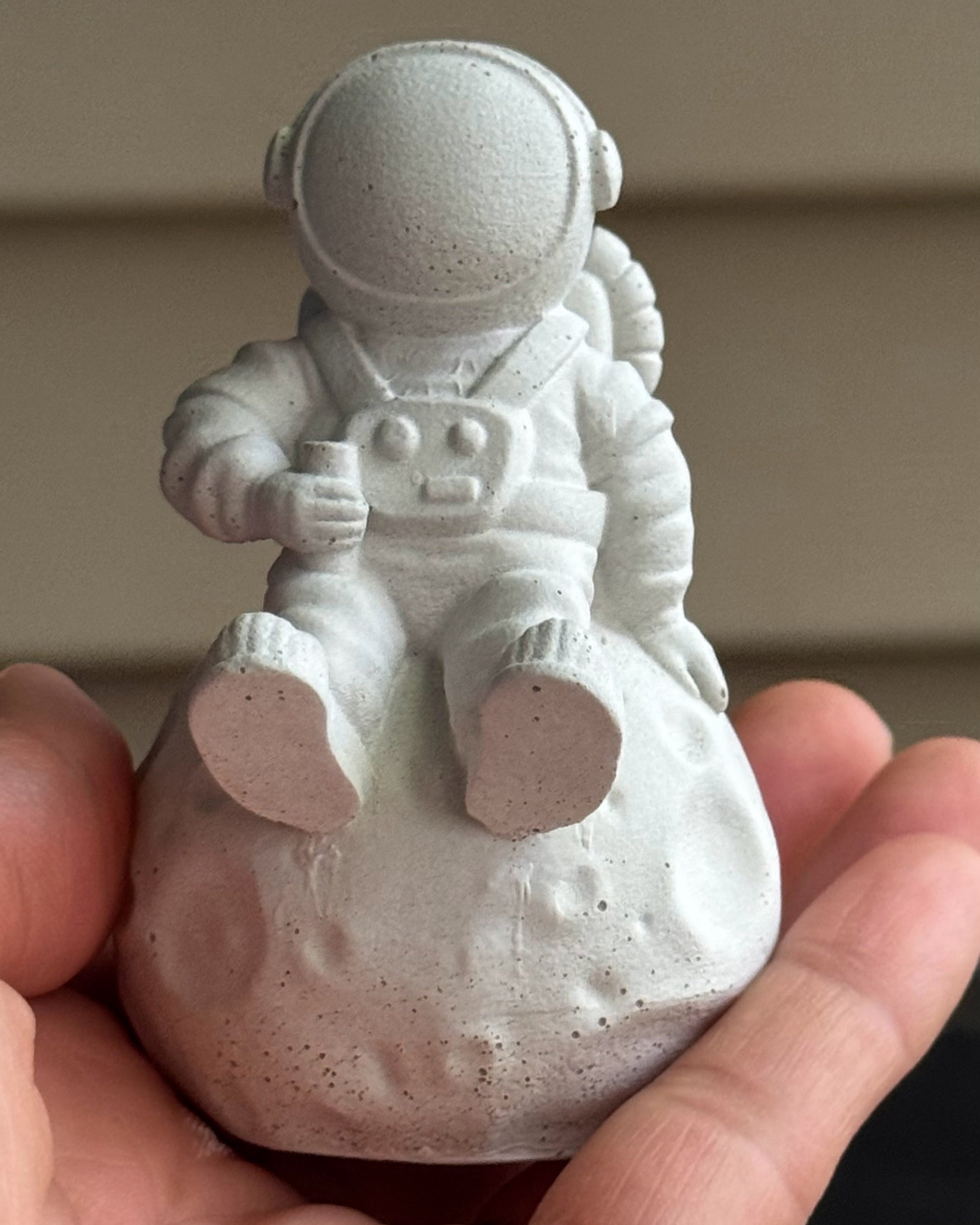 Bring a touch of the cosmos into your home with this handmade concrete astronaut, sitting peacefully on a moon.
