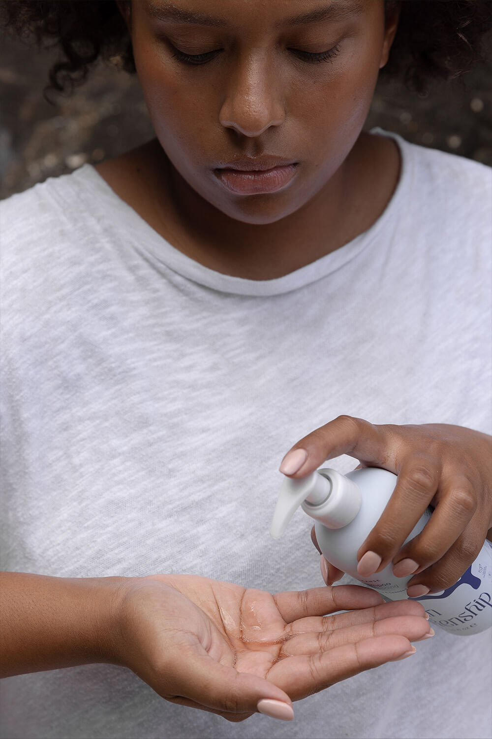 Wash with Cleanse Shampoo using a generous amount (5-10 pumps) on the roots only - really work in the product to the roots, getting the whole crown and creating lather with your fingers. To create extra lather, rub shampoo between your palms and then apply to roots. Do not shampoo the lengths, to avoid dry hair. Rinse thoroughly, and follow with our Conditioner with Aloe & Shea Butter for best results. To remove excess oil & buildup, use a little extra shampoo at the roots to effectively cleanse.