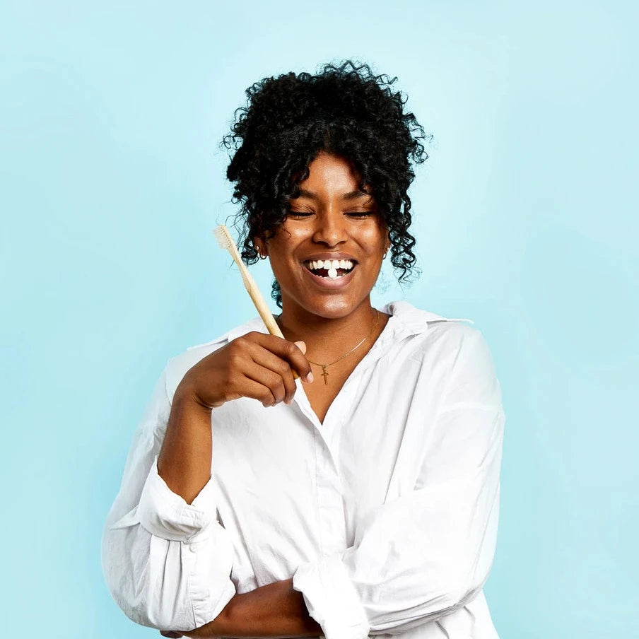 Pop a tab into your mouth and chew it up. Wet your toothbrush and brush, baby brush. Smile, scrub, rinse, and repeat. Twice a day, everyday!