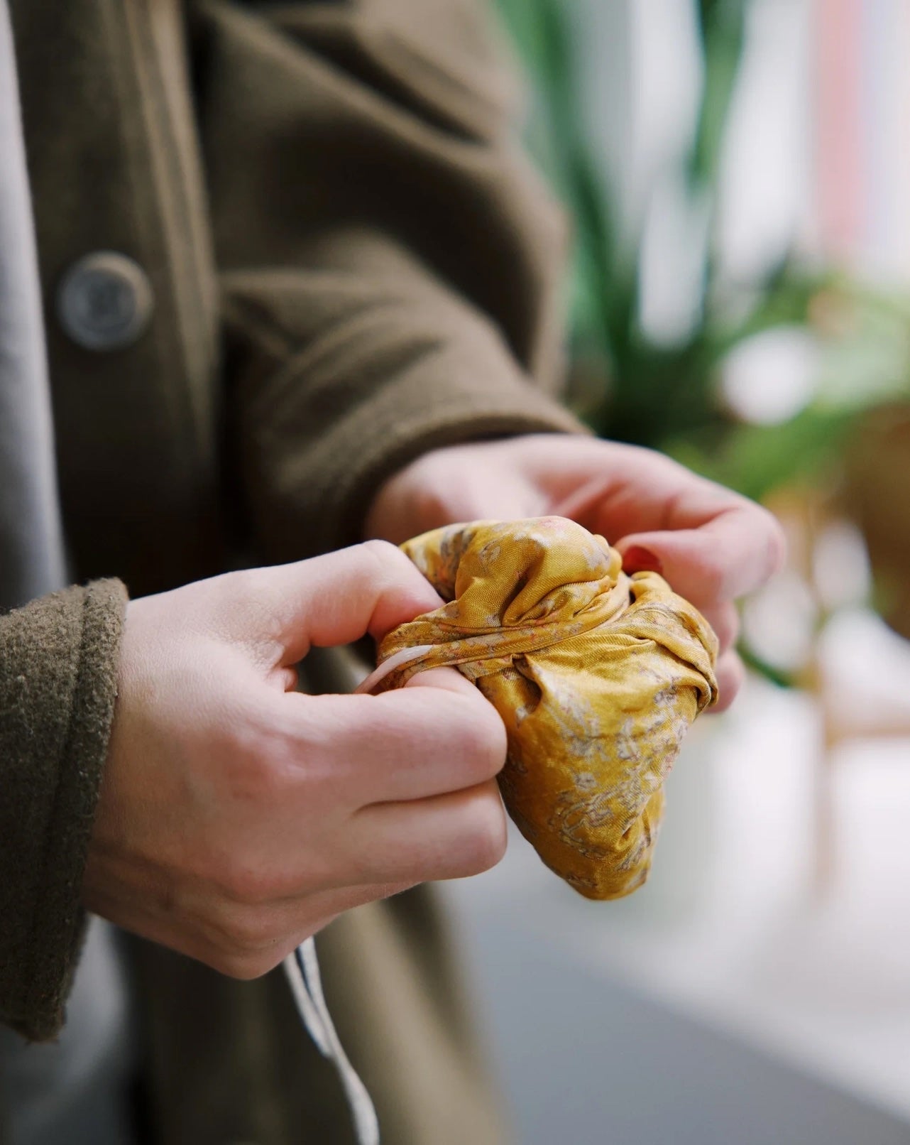 What once was tossed away has now found purpose in your hands. Say good bye to plastic with our grocery/tote bags that are made with beautiful Indian Upcycled Sari Material.