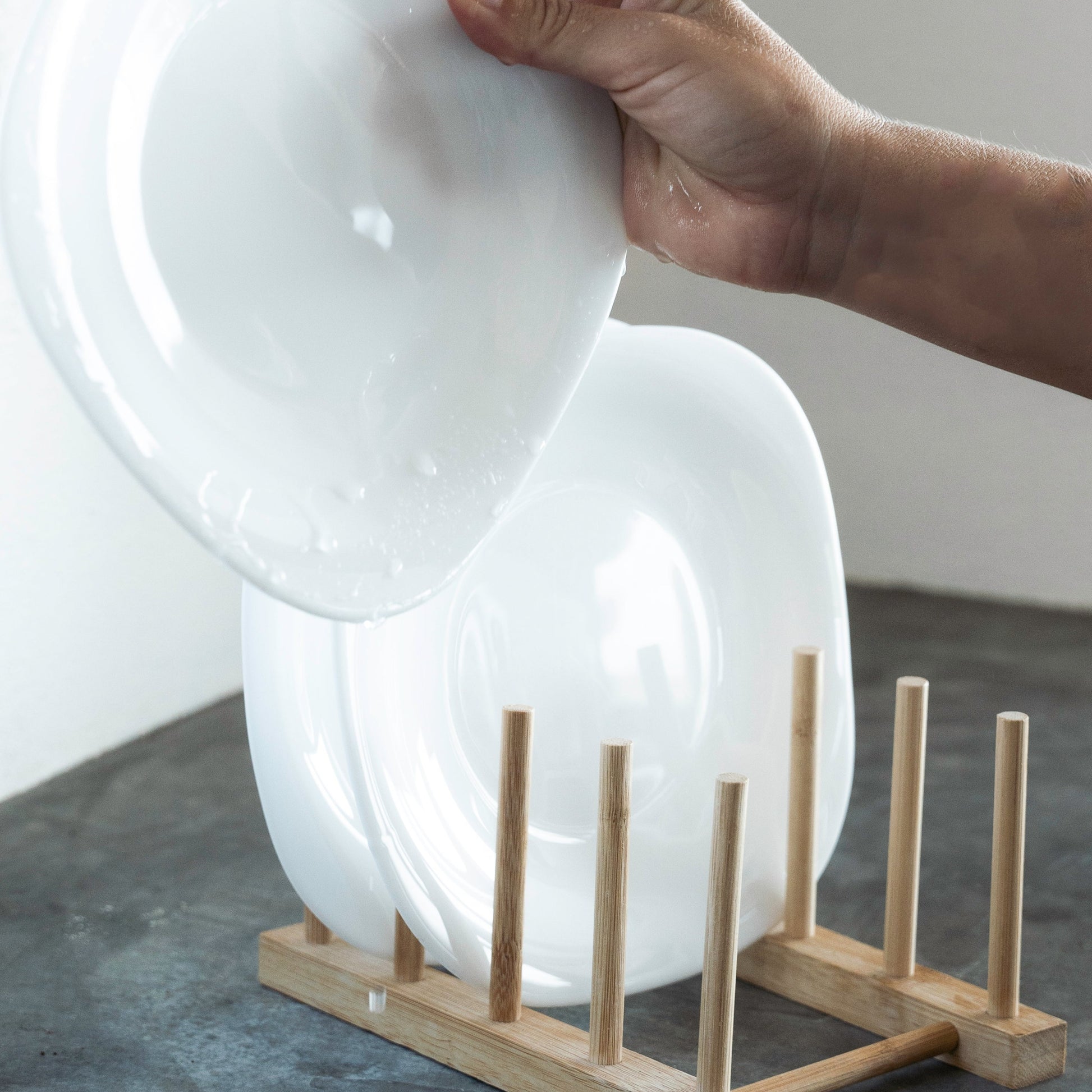 This sturdy drying rack is made of sustainable bamboo and is great for storing or drying plates, cups, and reusable bags.