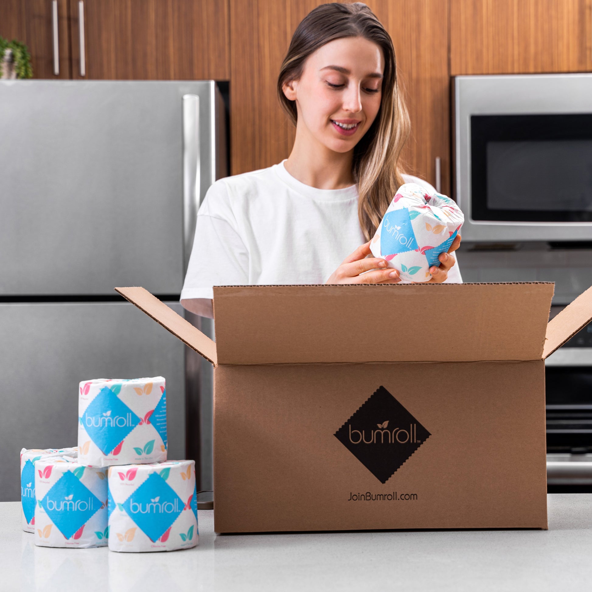 Bumroll offers a premium toilet paper designed to meet the highest standards of comfort and functionality. Our latest version combines luxurious softness with exceptional absorbency, providing a superior bathroom experience. Each sheet is crafted to be gentle on the skin while efficiently absorbing moisture, ensuring a clean, fresh feel with every use. With a commitment to sustainability, Bumroll uses eco-friendly materials, making it the perfect balance of comfort and responsibility. Available in subscription or one time purchase. "The production of recycled paper has significant environmental advantages over virgin (nonrecycled) paper production, including less impact on forest resources, less air pollution, less water pollution, less water consumption, less energy consumption, and less solid waste, quoted from CalRecycle. Join the movement for a better, softer, and more absorbent clean with Bumroll—the brand that cares for both you and American jobs.