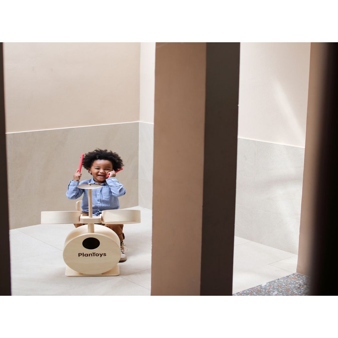 Join a rock band and take center stage with the PlanToys Drum Set! This musical playset is the first one in the world to be entirely made out of wood and comes with the ability to produce a variety of sounds and rhythms. Complete with a snare drum, tom drum, and bass drum with a kick pedal, cymbal, and pair of rubber drum sticks, children can strengthen their hand-eye coordination, motor skills, ability to concentrate, auditory acuity, and more.