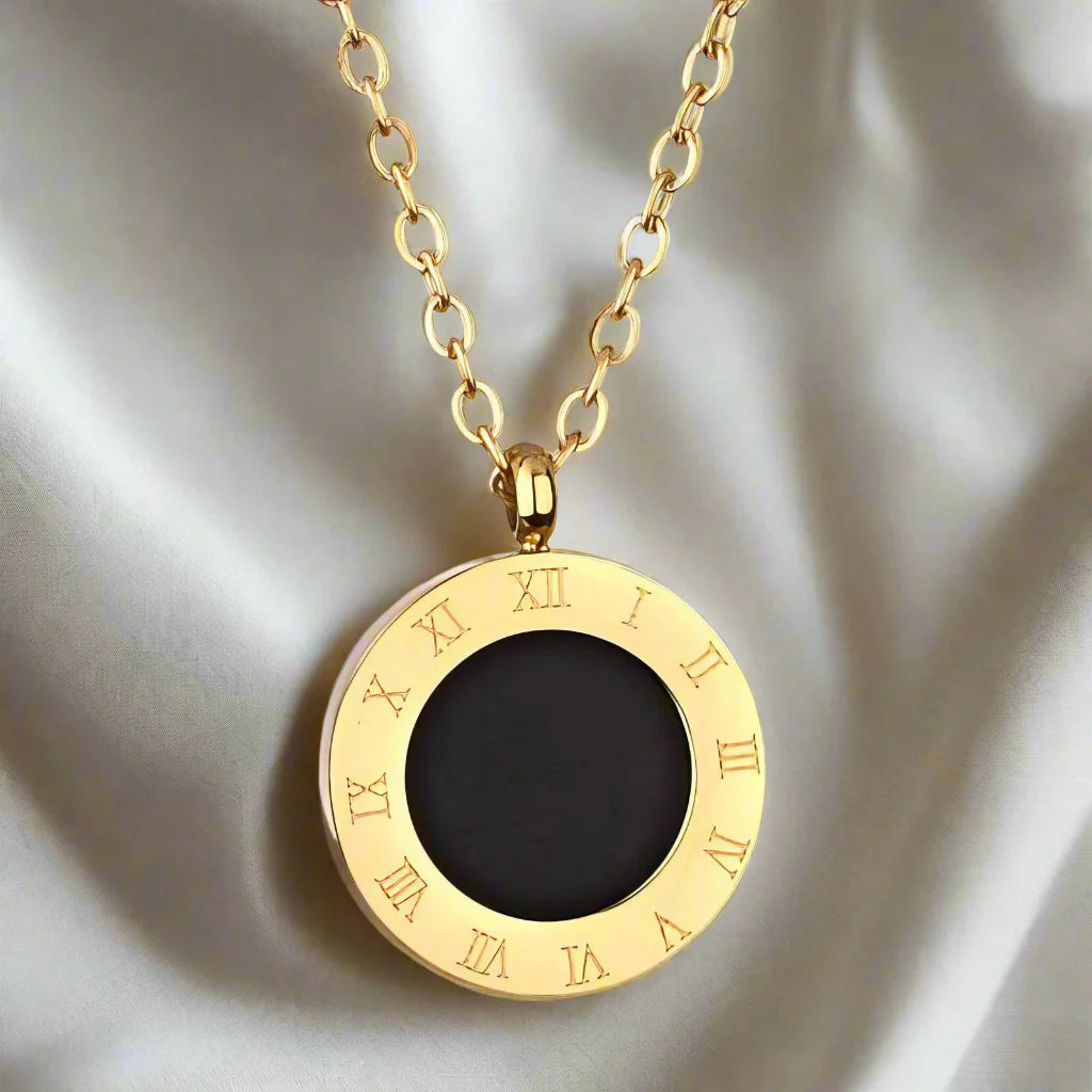 Simplicity meets elegance with Dvassa gold-plated chain necklace, featuring a sleek black Roman numeral pendant. Designed with a minimalist approach, this necklace offers a timeless style that can be worn with any outfit.