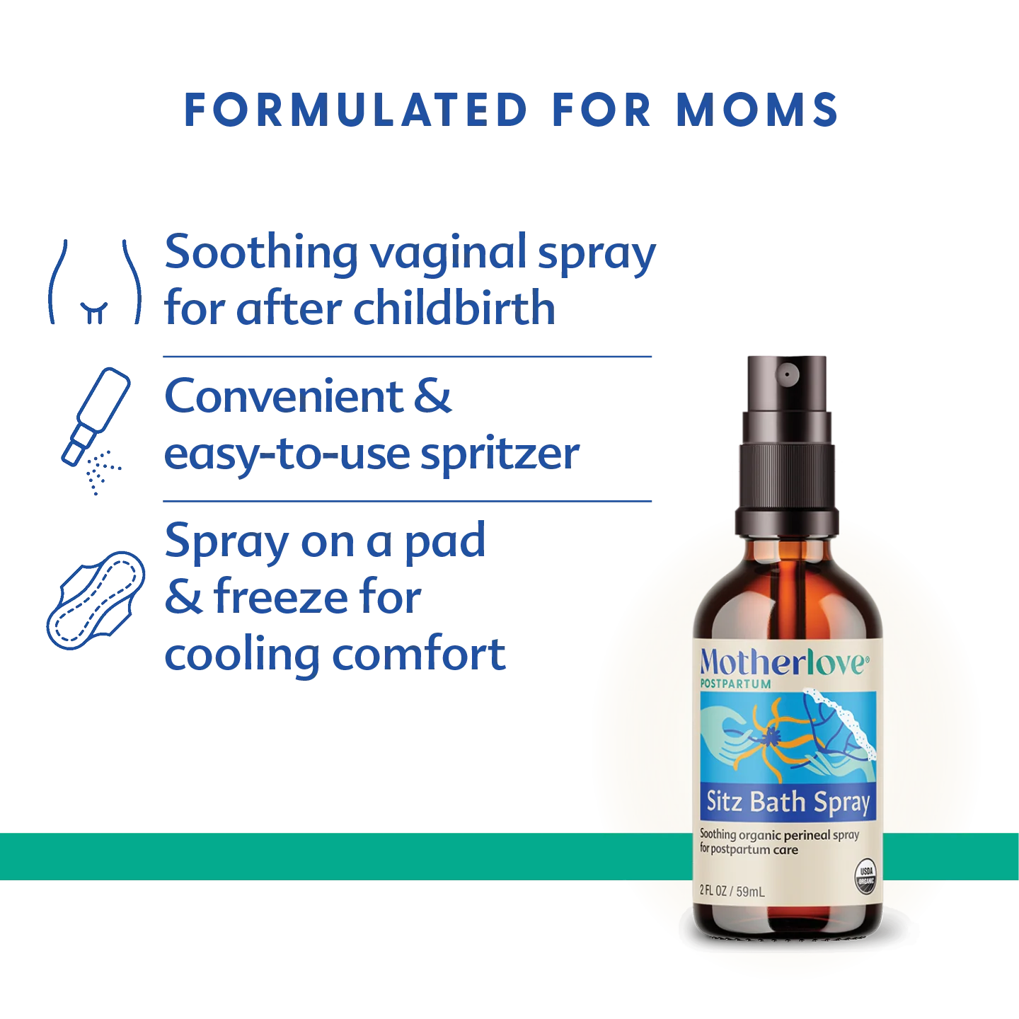 Sitz Bath Spray delivers soothing organic herbs in a quick spritz, so you can get the comfort you need after childbirth.