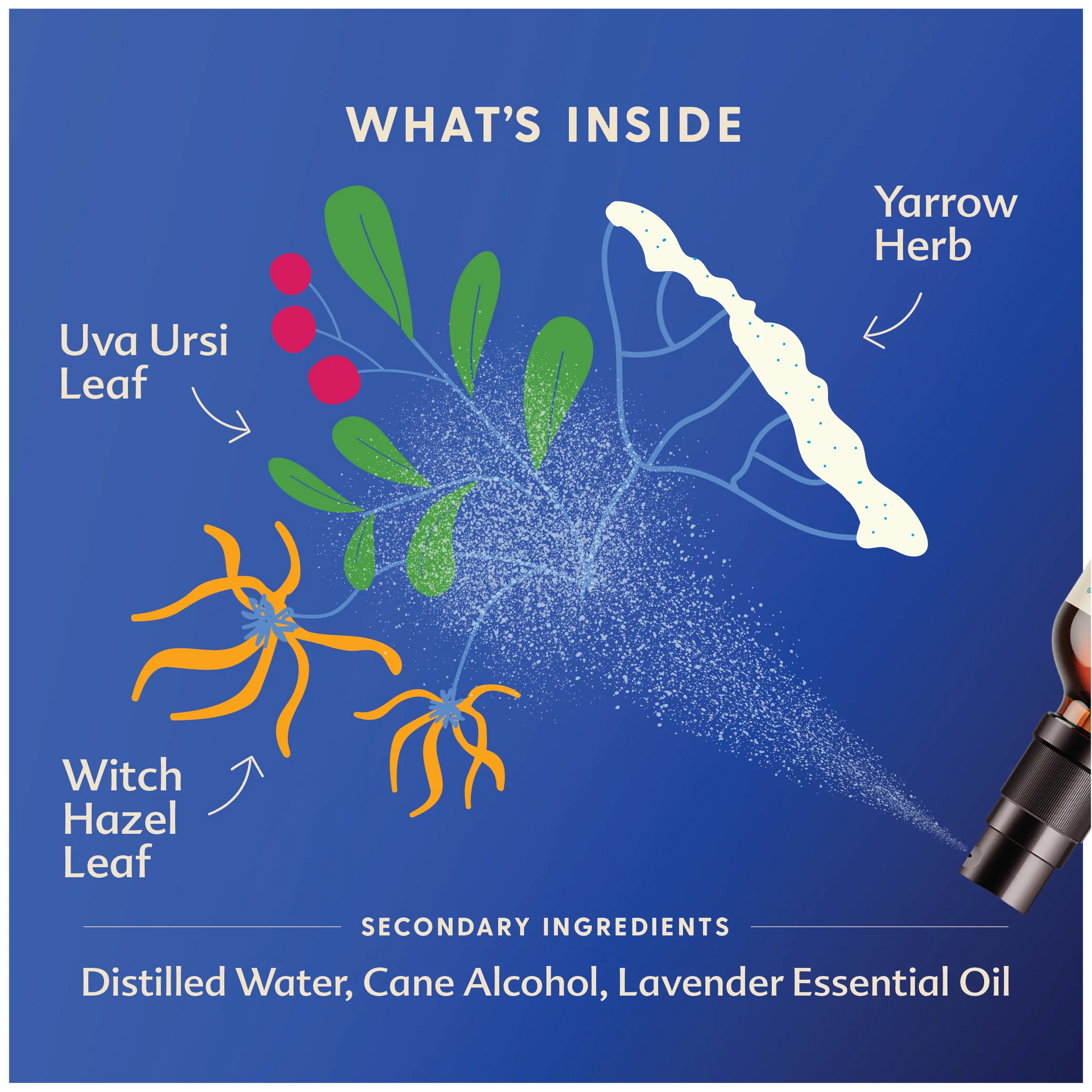 Distilled water, cane alcohol*, witch hazel extract*, yarrow herb*, uva ursi leaf*, lavender essential oil*