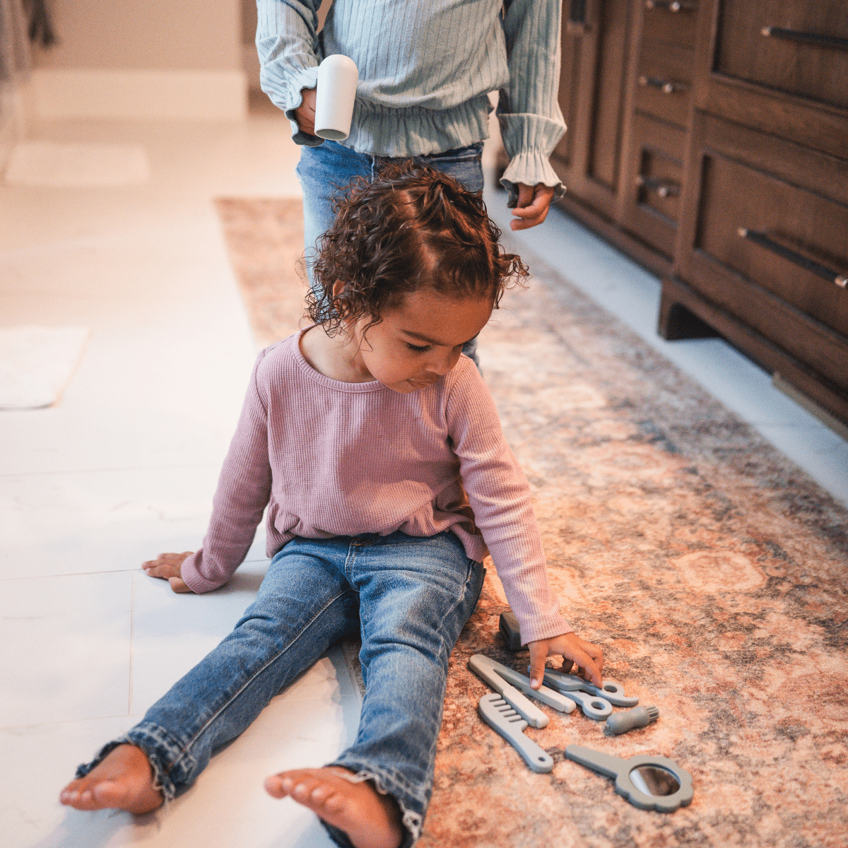 Elevate playtime for your little one with our Silicone Hairdresser Set. Crafted with care, it's lightweight and safe for endless creativity. Complete with scissors, comb, mirror, hairdryer, hair straightener, perfume/cologne bottle, brush, razor, and mirror, it's a stylish package for fine motor skill development. Plus, it comes in a chic cotton dust bag.