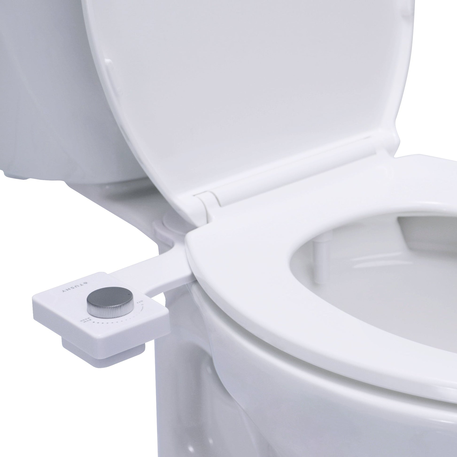 - Universal fit on almost any toilet with adjustable seat fasteners that firmly secure your TUSHY between the toilet bowl and seat.